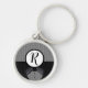 Here you'll find a keychain with an elegant design, showcasing a black mini-check backdrop and a subtle black tuxedo motif complete with a bowtie. Your monogram letter takes center stage, highlighted against a white and black circular background.