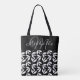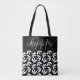 Monogram black & white botanical pattern tote bag