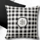 Stylish buffalo check pattern and circle framed monogram decorate this "16"x16" polyester throw pillow. The back is solid black for reverse use. Change initials by using the Template provided. Made from high-quality Simplex knit fabric, these 100% polyester pillows are soft and wrinkle-free. Also available in 20"x20" size. Machine washable; made in the USA. See "About This Product" at side for more information and care.