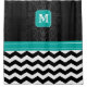 Monogram Black / White Chevron Pattern with Teal Shower Curtain