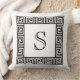 This is an attractive throw pillow for your home. It has a black and white ancient Greek Key design and a place for a monogram, initial or text. Use whichever font, size or color you like.