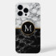 Monogram Black White Marble Stone Custom Letter iPhone Case
