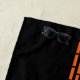 An abstract personalized black, white and orange striped pattern designed beach towel.