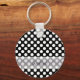 Monogram Black White Trendy Fun Polka Dot Pattern Keychain