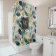 Monogram Blue and Gold Boho Elegant Leaf Shower Curtain