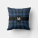 Monogram Blue & Black Gingham Plaid Checks Pattern Throw Pillow