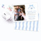 * Photo credit: Photography © Storytree Studios, Stanford, CA ** / A stylish monogram birth announcement to announce the birth of a darling baby boy. The watercolor elements (bows) were originally hand painted by me in watercolors onto 100% cotton paper before being scanned and arranged / styled digitally. You can add another of your photos to the reverse side or you can leave it as the blue and white ticking stripes pattern.