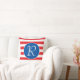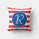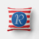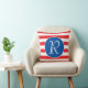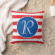 Monogram Blue Circle | Red & White Stripe Throw Pillow
