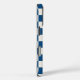 Cool iPhone case features a bold blue and cream checkered pattern with a customizable monogram. Add (or delete) 3 initials in the sidebar to personalize it. The geometric checkerboard pattern is made of rows of alternating beige and blue squares. Other case styles and models also available in the sidebar.
