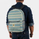 Monogram Blue Cream Ocean Patterned Stylish Modern Printed Backpack