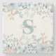 Monogram Blue Floral Botanical Stone Coaster