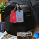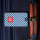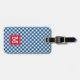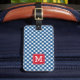 Travel in style with this stylish monogram luggage tag featuring a red square against a blue gingham pattern on the front with a match red back side..