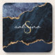 Monogram Blue Gold Agate Geode Beverage Coaster