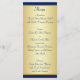 This elegant and affordable royal blue and gold floral menu card has a PRINTED ribbon and a blue and gold faux engraved PRINTED medallion on it that matches the wedding invitation shown below. It is designed on a rack card with a glossy front, and matte finish on the back. If you would like a menu card on invitation paper to match your invitations, or if you have any requests for additional items or changes, please email niteowlstudio@gmail.com with your request.