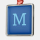 Monogram Blue Modern Add Your Name Initial Metal Ornament