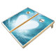 Monogram Blue Ocean Wave Rustic Beach Cornhole Set