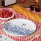 In crisp blue and white, my artwork features a bunny rabbit design in a diagonal placement, with your custom monogram above the design. It's easy to customize your initial by using the "Personalize" button. My artwork is inspired by antique Delft, Dedham and oriental chinoiserie pottery motifs. Great for any occasion or home use. Imagine a springtime or summer garden party with this delightful design. Whimsical, unique, original artwork & design by Tuzi Williams.