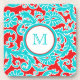 This modern and trendy monogrammed turquoise blue, red, and white floral damask coaster set would make an ideal house-warming gift for the hip, young couple. Customize it however you want!