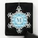 Monogram Blue Snowflake Pattern Customizable Pewter Christmas Ornament