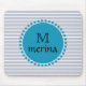 Monogram Blue Teal Striped Gold Circle Mouse Pad