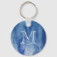 Monogram Blue Watercolor Texture Abstract Painting Keychain