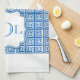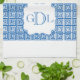 This is a pretty towel that has a blue and white ancient Greek Key pattern with a monogram in a frame. Fill the frame with your own initials, name or text. Use the font, size and color that you prefer.