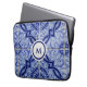 Monogram Blue + White Mediterranean Tile Pattern Laptop Sleeve