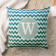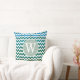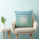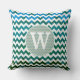 Monogram bluish chevron stripes throw pillow