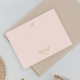 Feminine notes featuring a small watercolor pink blush, peach cream and red roses bouquet on a dusty rose millennial pink paper background with a red burgundy typography custom monogram. ++++++++++ Personalize it with your business or name initials!