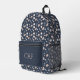 Monogram Blush Pink Navy Blue Floral Flowers Printed Backpack