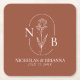 Monogram Boho Floral Terracotta Burnt Orange Wedding Square Paper Coaster. (Vector used designed by pikisuperstar - Freepik)