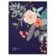 A colorful spray of graphic botanical flowers decorate this clipboard and it can be personalized with three monogram initials. The background is a rich navy blue.