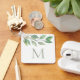 This botanical keychain is decorated with watercolor foliage in shades of green.