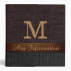Monogram Brown & Black Burlap Rustic Jute 3 Ring Binder
