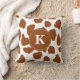Monogram Brown Cow Print and Teal Accents Pillow for farm themed home decor.