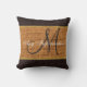 Monogram Brown Rustic Burlap Jute Throw Pillow