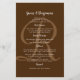 Wedding menu template in brown with big monogram initial background and white text. Include two or three entrée selections, with a first course, second course or appetizer section. This is very affordable paper with bulk discounts.