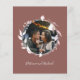A simple chic floral faux foil monogram terracotta wedding invitation. Easy to personalize with your details. Modern boho wedding invitation editable, wreaths photo wedding invitation, customizable, calligraphy handwritten font, simple, elegant.