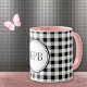 A classic black and white buffalo check print, with double framed monogram on this combo color beverage mug. Choose from 9 colors for handle and inside. Easily change initials using the Template provided. Also available in 15-ounce with five colors to choose. Makes a perfect gift for family, friend, boss, teacher or gift yourself. See "About This Product" at side for more information.