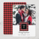 Monogram Buffalo Plaid Red Black Merry Christmas Holiday Card