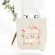 Monogram Bunny Rabbits Floral Easter Personalized Tote Bag