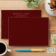 This customizable invitation envelope features a solid Burgundy envelope with peach interior and typography. Open the envelope to find a beautiful arrangement of Burgundy and peach florals.