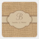 Monogram Burlap Custom Square Stickers