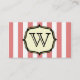 A vintage circus inspired business card featuring a background of faded red and white on front and back. Personalize the front with your initial inside frame. Personalize the back with your contact information. Look for other vintage circus inspired items at Jill's Paperie.