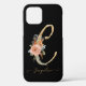 Monogram C Gold Script Black BOHO Pink Floral Leaf Case-Mate iPhone Case