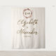 A simple chic floral rose gold foil monogram light peach wedding backdrop. Easy to personalize with your details. Modern boho wedding backdrop editable, customizable, calligraphy handwritten font, simple, elegant.