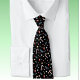 A charming standard size black tie featuring a pattern of festive gold stars, hearts and candy canes printed on both sides, and stylish gold printed monogram initials. Easily change the initials to make it yours using the Template provided. Dimensions are 55" long, 4" at widest point, monogram is approximately 1/2" in width. Printed in vibrant full color, made from 100% polyester, silky finish. Dry clean only. See "About This Product" at side more information. [The monogram will be centered and straight, unlike shown in the mock-up photo.]