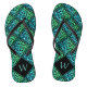 A pair of black monogram flip flops with a blue-green Celtic knot repeated tile design. Make it personally and uniquely yours with your initials!