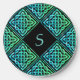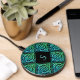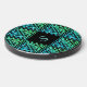 A black monogram wireless charger with a blue-green Celtic knot repeated tile design. Make it personally yours with your very own monogram!