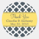 Charcoal quatrefoil pattern on white. Monogrammed charcoal and white quatrefoil pattern with yellow thank you stickers.